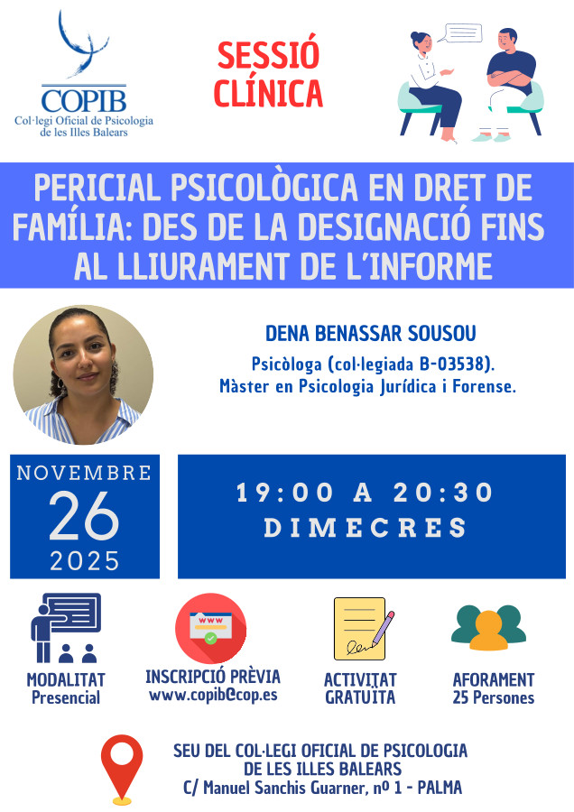 ACTIVITAT GRATÜITA PER ALS/A LES COL·LEGIATS/DES DEL COPIB, ESTUDIANTS PRECOL·LEGIATS/DES I ESTUDIANTS DE GRAU DE PSICOLOGIA I MÀSTER PGS.