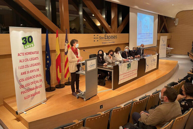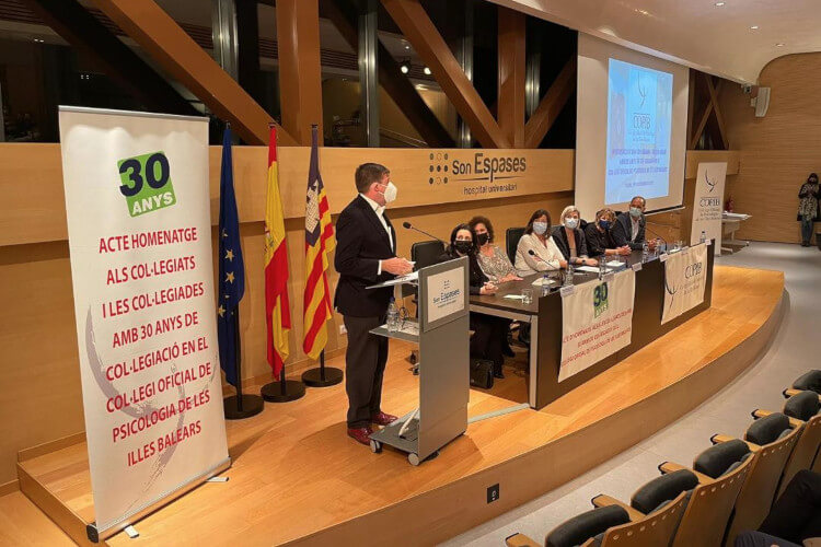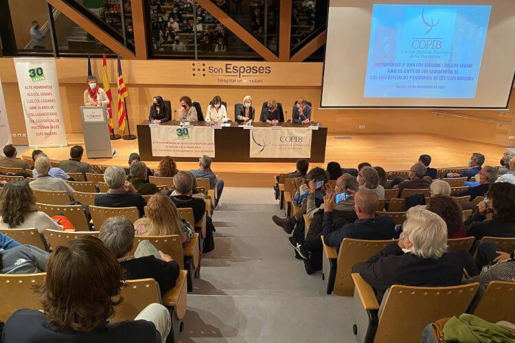 El salón de actos del Hospital Universitario de Son Espases acogió el pasado martes, 29 de noviembre, el acto de homenaje organizado por el Col·legi Oficial de Psicologia de les Illes Balears (COPIB) para reconocer a 134 psicólogos y psicólogas de Mallorca sus 30 años de colegiación y trabajo ininterrumpidos, contribuyendo con su “compromiso, esfuerzo y dedicación al reconocimiento social de la profesión en la comunidad autónoma, a la dignificación del colectivo y al cuidado de la salud mental y emocional de la ciudadanía”.