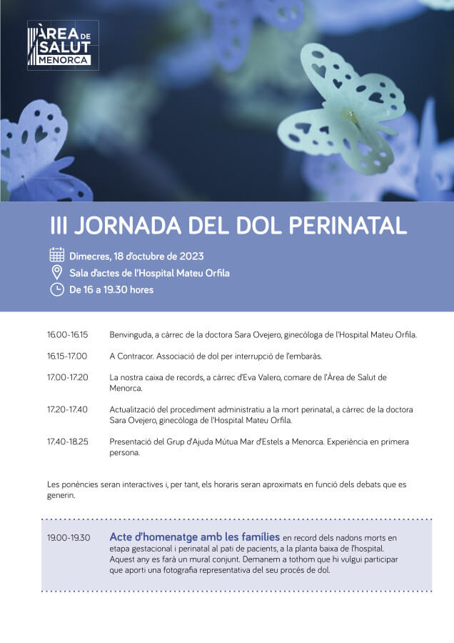 Una vegada més s'organitza a Menorca la III Jornada del duel Perinatal, i l'acte d'homenatge amb les famílies que en aquesta ocasió pretén també realitzar un mural conjunt amb fotografies representatives del procés de duel.